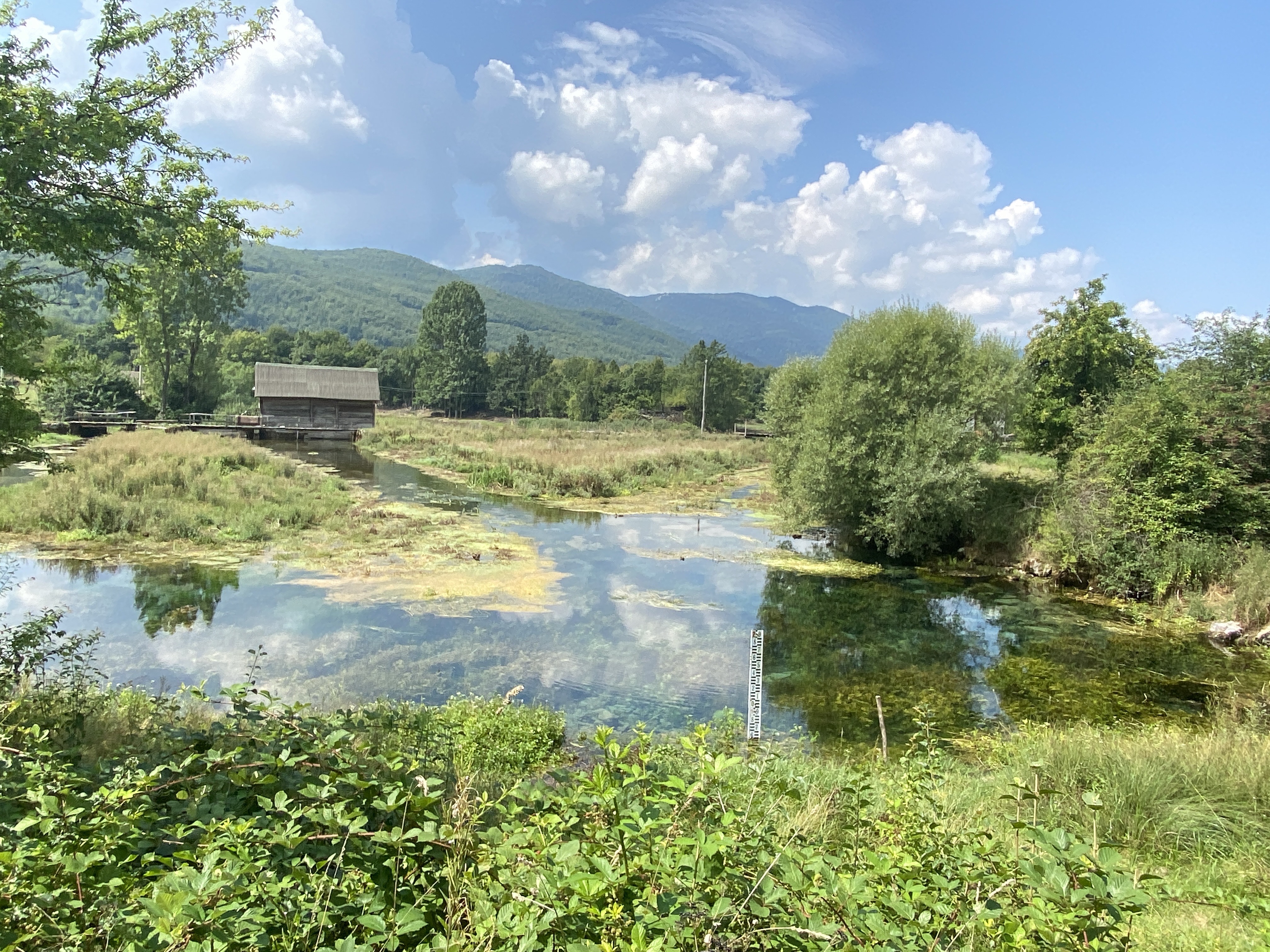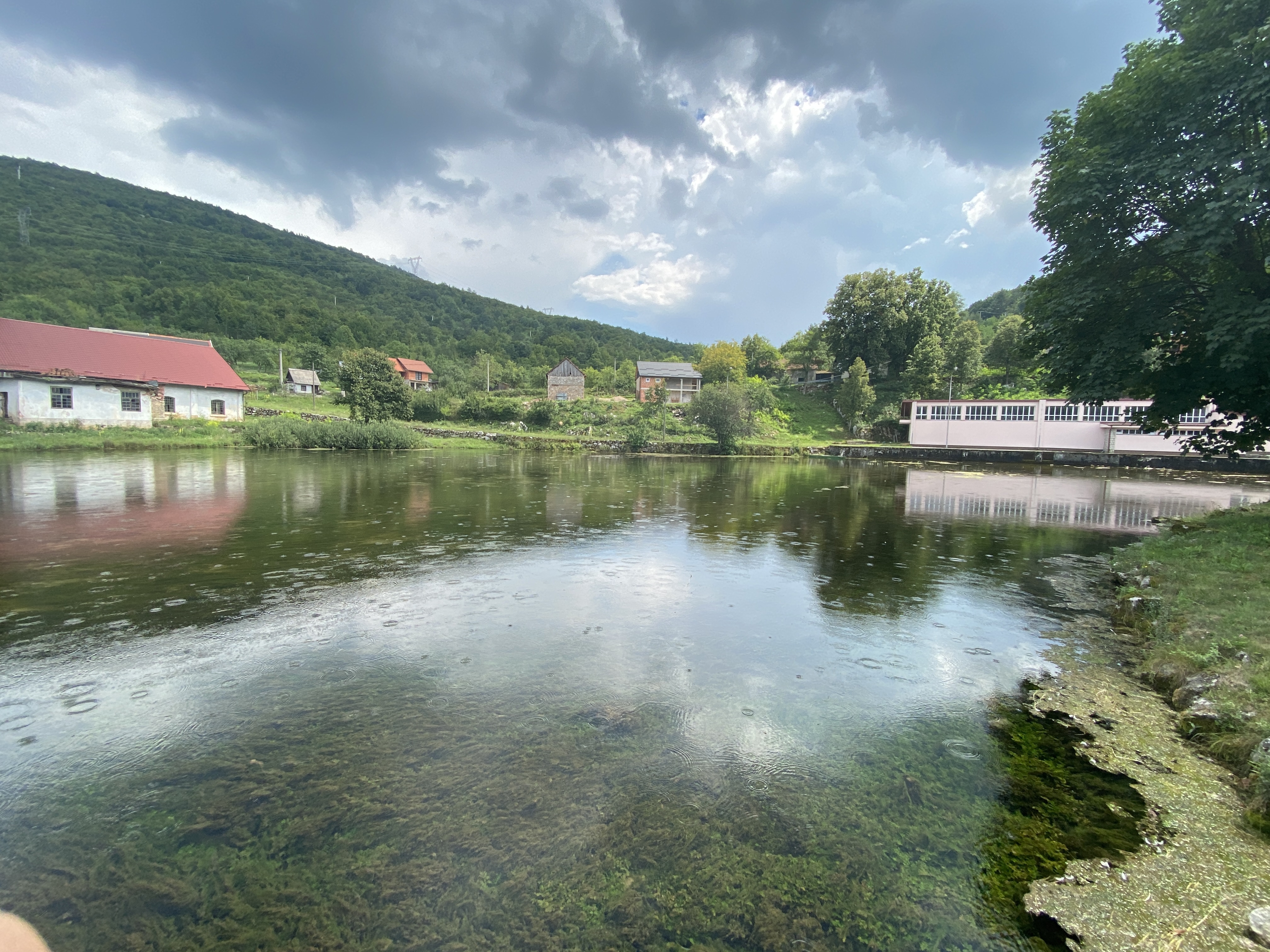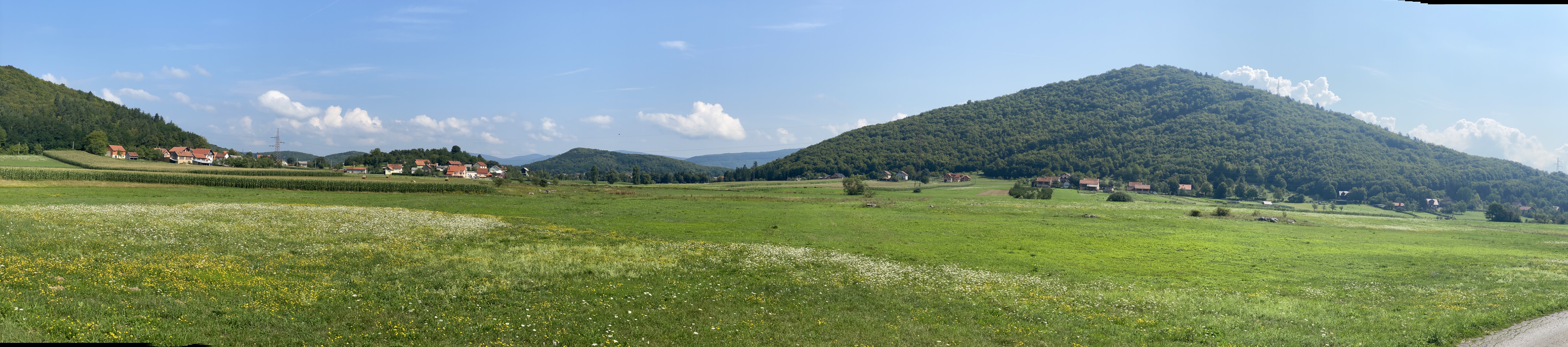 Požurili smo sa zalogajima i kavicom, te kupovinom brašna, koje se ovdje nudi, a potiče sa Majerovog vrila i tamošnjih mlinica, jer je dolazio najavljeni lokalni pljusak. Prve kapi su nas dokačile baš kada sam snimao gornje fotografije vrela, no nije škodilo s obzirom na preko 30 C koje je živa u termometru dosegla do 13:00 sati kada smo napustili izvore naše jučerašnje domaćice. Slijedilo je brzih 5 kilometara do Ličkog Lešća, gdje smo se opet priključili državnoj D50, i slijedili istu do spomenutog rotora na 30. km rute, gdje smo odabrali treći izlaz i uputili se na posljednjih 7 kilometra rute, kroz Čoviće, i pored Aerodroma Otočac.