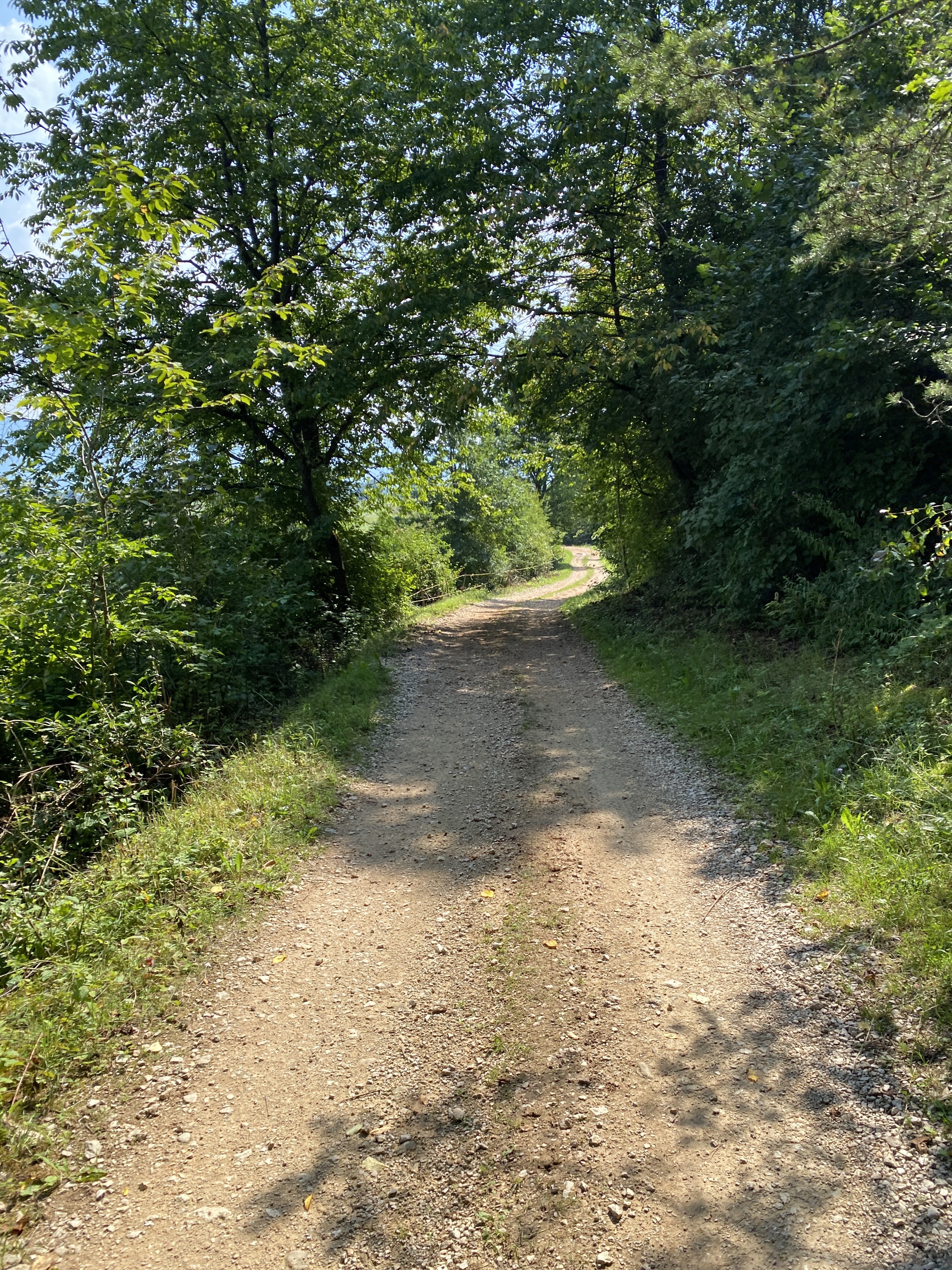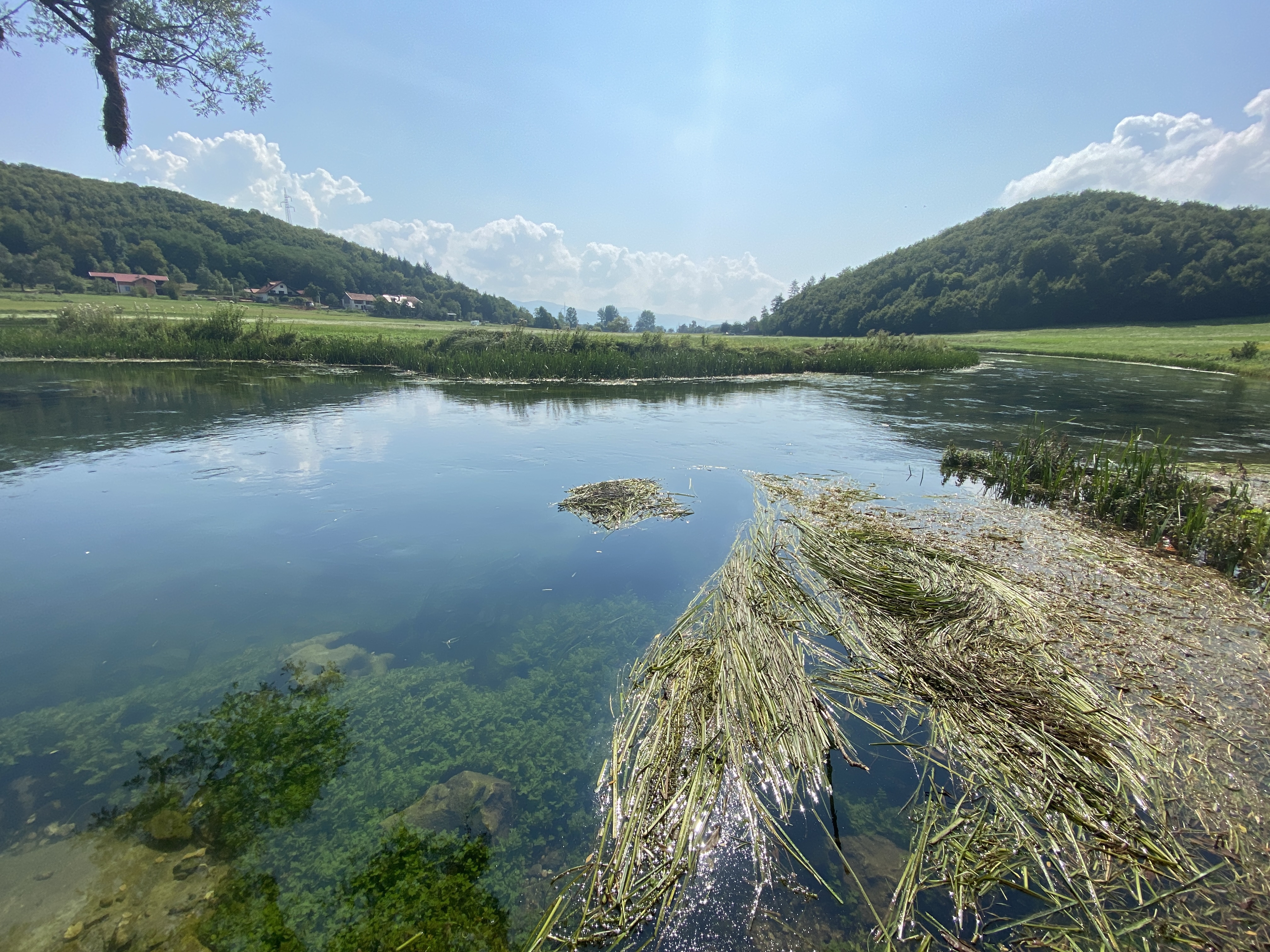 Prolaskom kroz osvježavajući šumarak, cesta se spustila u polje, prešla u pravi poljski put, nekih stotinjak metara od rijeke, no s vremenom se približavajući potpuno predivnoj obali, bogatoj pticama, kao što sam rekao, posebno aktivnim i veselim malim gnjurcima, koji ispuštaju vrlo zarazne zvukove, kao iz nekog veselog crtića. Još sljedeća tri kilometra smo slijedili tijek lijeve obale do račvanja lokalne ceste, sa D50, u mjestu Čovići. Nakon svega dvjestotinjak metara, prvi puta smo prošli kružni tok, kojem ćemo se vratiti ponovno blizu 30. kilometra. Ovoga puta smo otišli na drugi izlaz, na prvi je otišla spomenuta Barkanova staza, a na treći se nadovezuje D50, prema aerodromu i Otočcu.