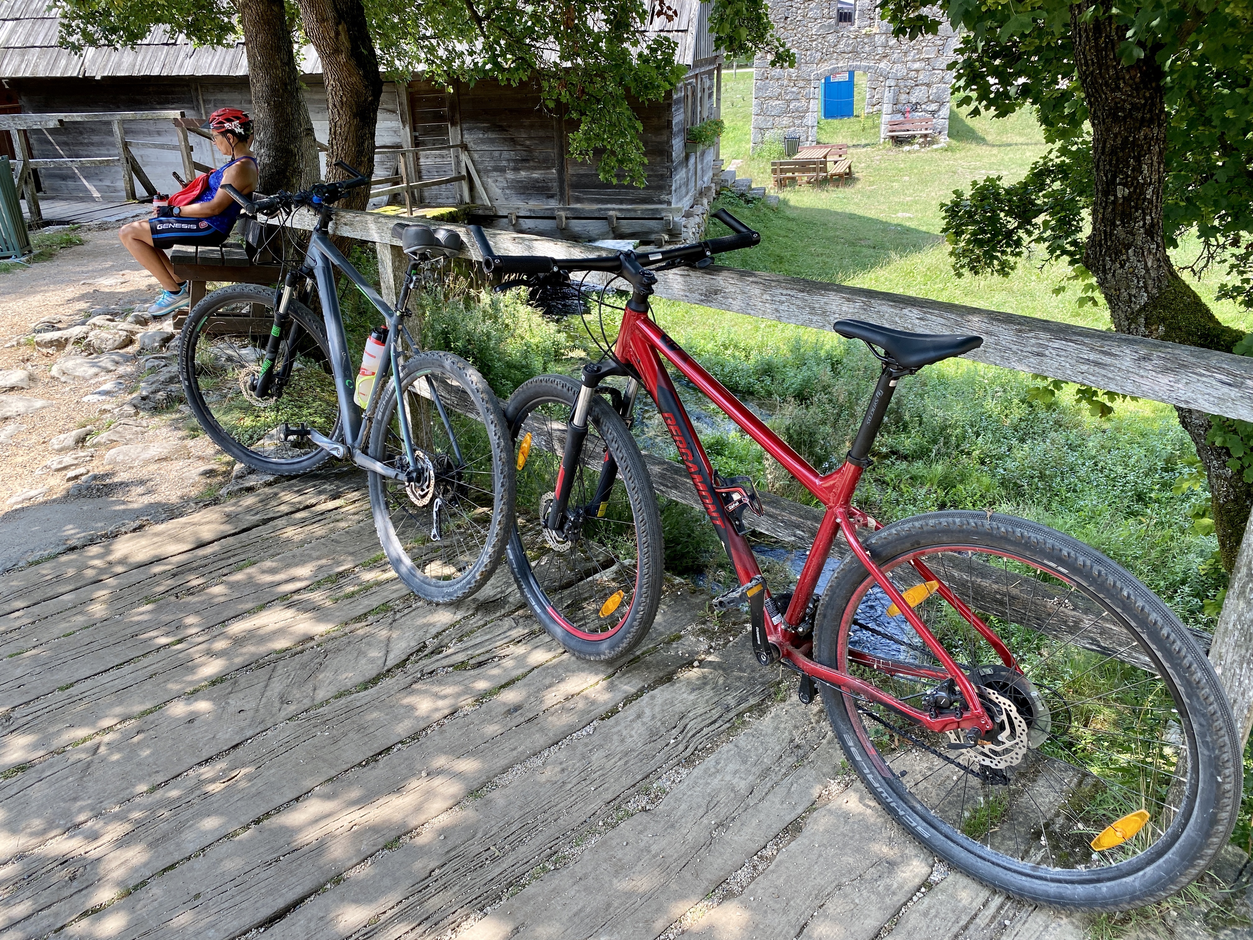 Nakon šest kilometara lokalnim asfaltnim cestama, na jednom od mostova smo morali prijeći preko Gacke, te nešto dalje od desne obale rijeke, kroz mjesto Prozor, uglavnom prateći svoju ideju, ali što je zanimljivo i markiranu stazu broj 1, lokalnih biciklističkih staza ličko-senjske županije – Cyclolika, pod imenom Barkanova staza. Kada smo se sljedeći puta vratili preko još jednog mosta, do same Gacke, kako bismo opet pratili lijevu obalu, tu je bio zanimljiv makadam, crvenkaste boje, i ozbiljniji uspon, na ovoj inače prilično ravnoj trasi. To je bio naš deseti kilometar.